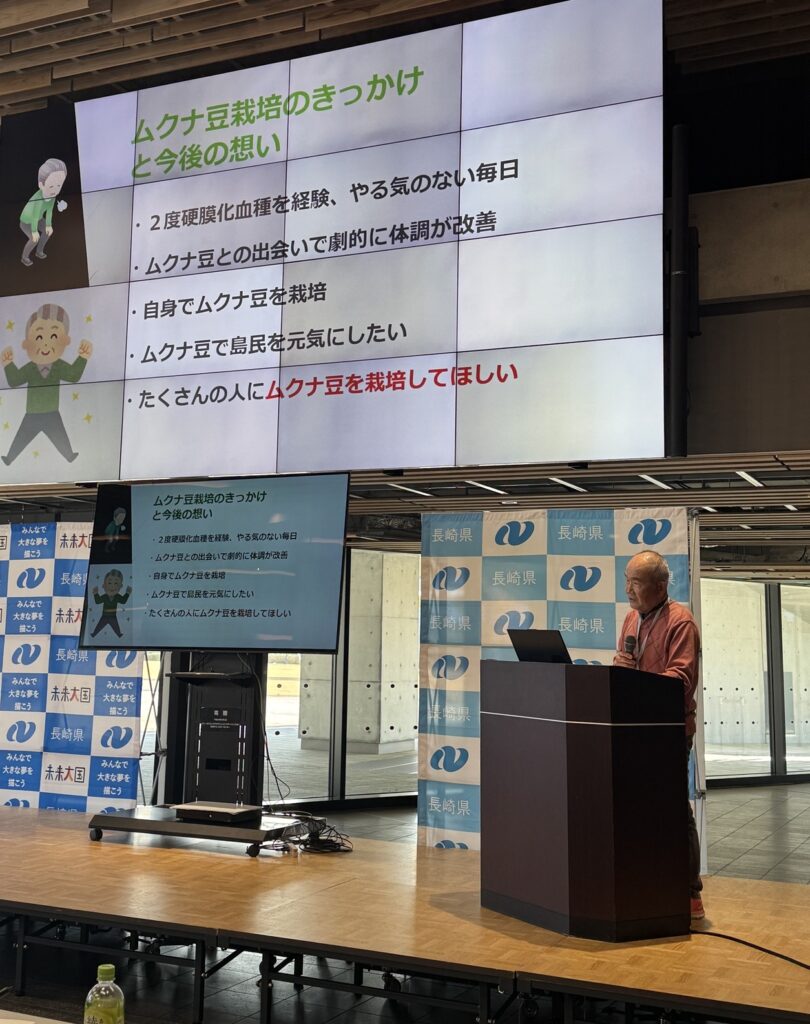 長崎市内から五島に移住し、その後2年間に2度脳梗塞で倒れ、退院後も体調が思わしくなくやる気を感じない日々を送っていました。そんな中、ムクナ豆を紹介されて試してみると、劇的に体調が改善した経験があります。その体験を通じて、同じ苦しみを抱える人々の支えになりたいという思いと、五島を元気にしたいという想いで応募しました。